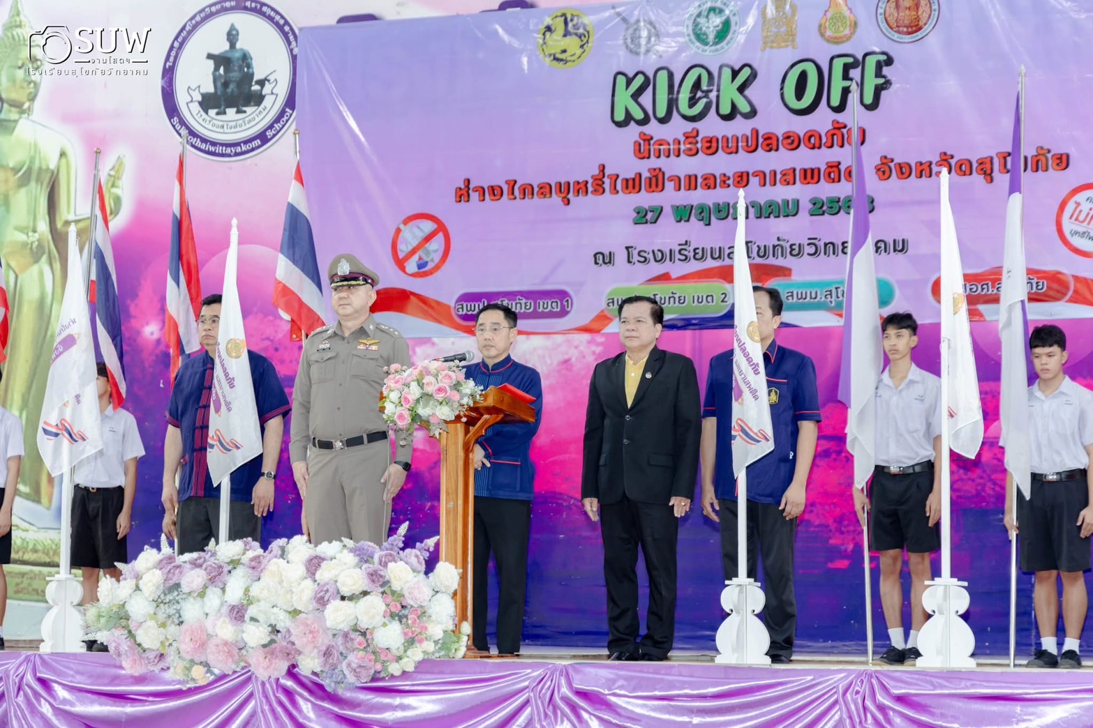 เข้าร่วมพิธีเปิดความร่วมมือและปฏิบัติการตรวจร่วมนักเรียนปลอดภัย ห่างไกลบุหรี่ไฟฟ้าและยาเสพติดจังหวัดสุโขทัย