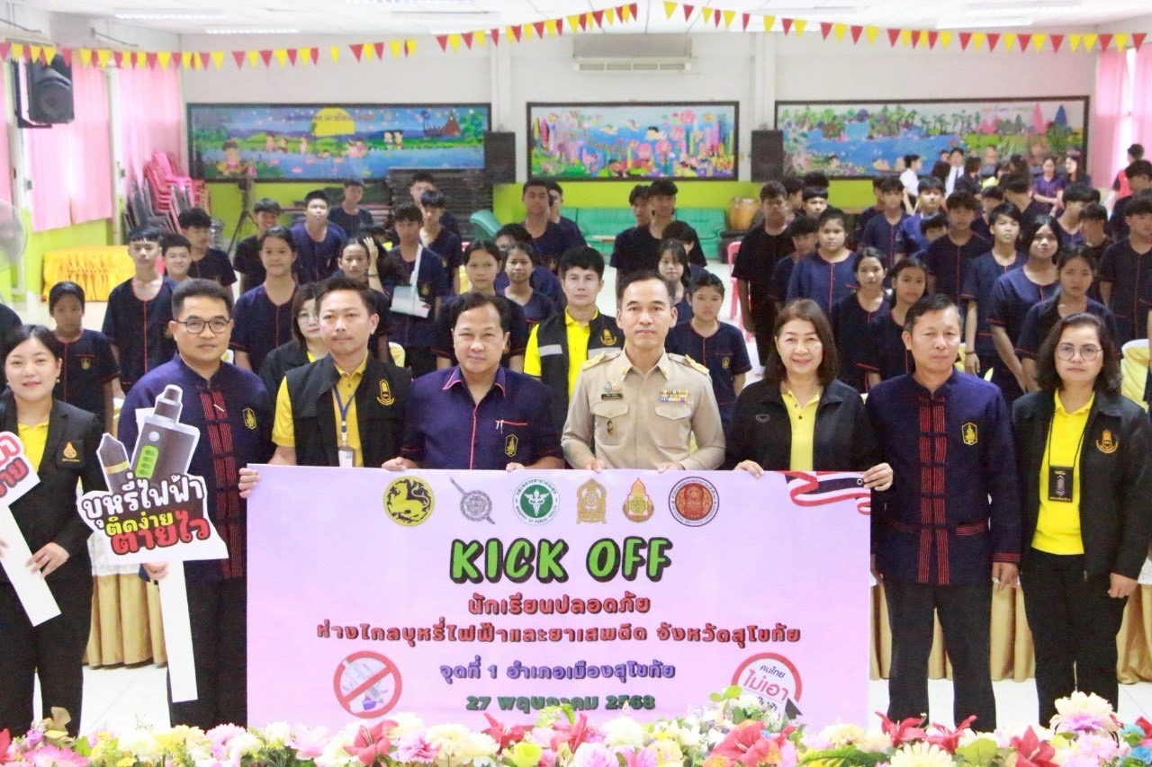 และกลุ่มเป้าหมาย โดยคณะปฏิบัติการตรวจร่วมนักเรียนปลอดภัยห่างไกลบุหรี่ไฟฟ้าและยาเสพติดจังหวัดสุโขทัย