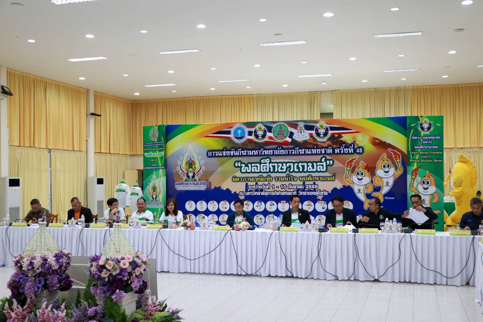 เมื่อวันที่ 3 กรกฎาคม 2568 เวลา 13.00 น. นายสุดเขต สวยสม ผู้อำนวยการสำนักงานเขตพื้นที่การศึกษามัธยมศึกษาสุโขทัย มอบหมายให้นายศราวุธ คำแก้ว รองผู้อำนวยการสำนักงานเขตพื้นที่การศึกษามัธยมศึกษาสุโขทัย เข้าร่วมการประชุมคณะกรรมการจัดการแข่งขันกีฬามหาวิทยาลัยการกีฬาแห่งชาติ ครั้งที่ 48 “พลศึกษาเกมส์” ณ จังหวัดสุโขทัย ครั้งที่ 1/2568 โดยมีนายนพฤทธิ์ ศิริโกศล ผู้ว่าราชการจังหวัดสุโขทัย เป็นประธานการประชุมดังกล่าว ณ อาคารวรรณกลาง มหาวิทยาลัยการกีฬาแห่งชาติ วิทยาเขตสุโขทัย ตำบลบ้านกล้วย อำเภอเมืองสุโขทัย จังหวัดสุโขทัย (4 กรกฎาคม 2568)