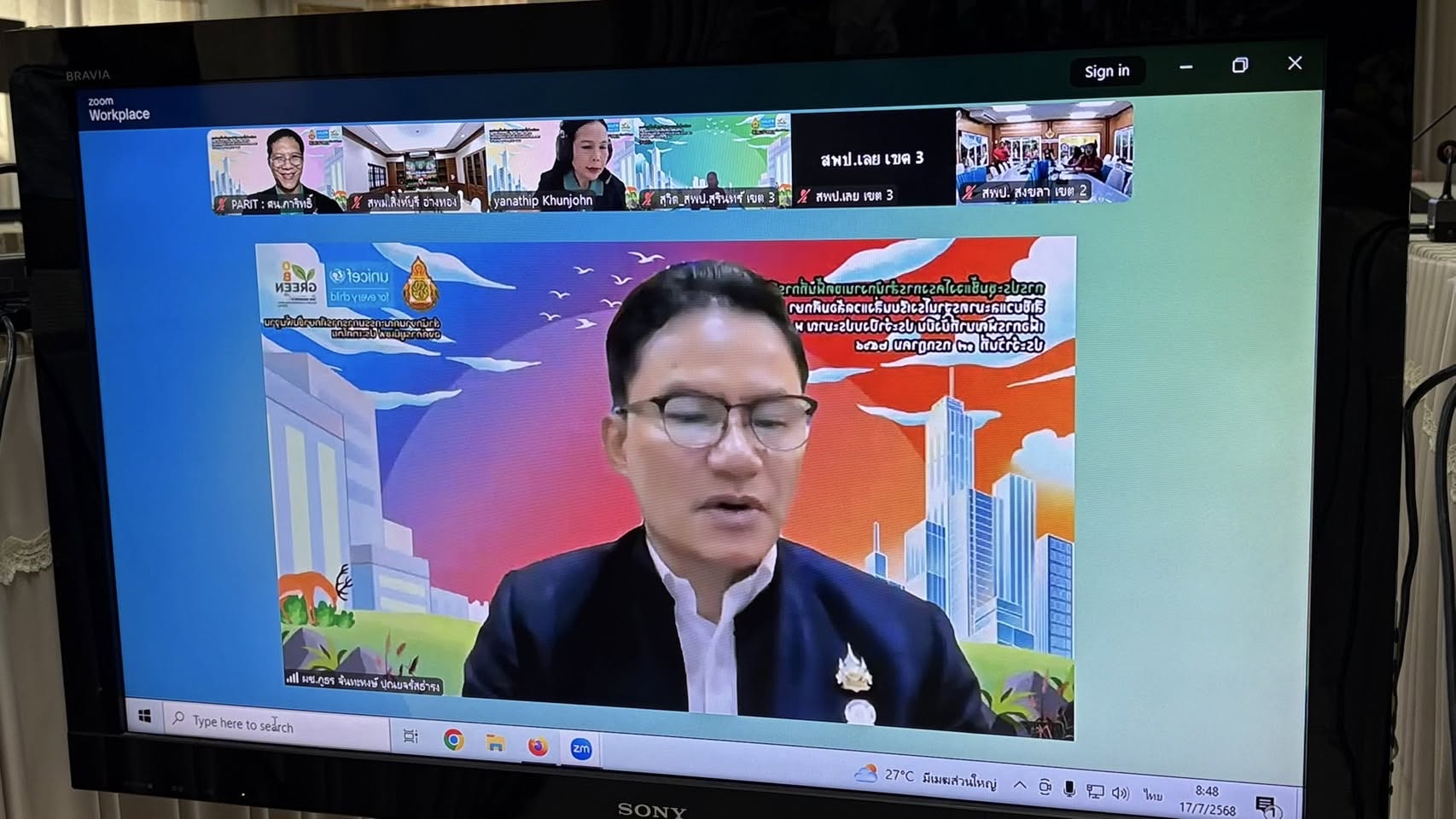 สีเขียวและมาตรฐานโรงเรียนสิ่งแวดล้อมศึกษาเพื่อการพัฒนาที่ยั่งยืน ประจำปีงบประมาณ พ.ศ. 2568 เพื่อรับนโยบายและดำเนินการขับเคลื่อนงานด้านสิ่งแวดล้อมนำไปสู่การปฎิบัติได้อย่างเป็นรูปธรรม ผ่านระบบออนไลน์ Zoom meeting