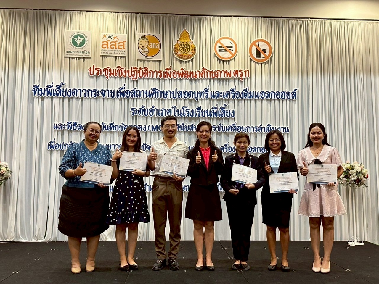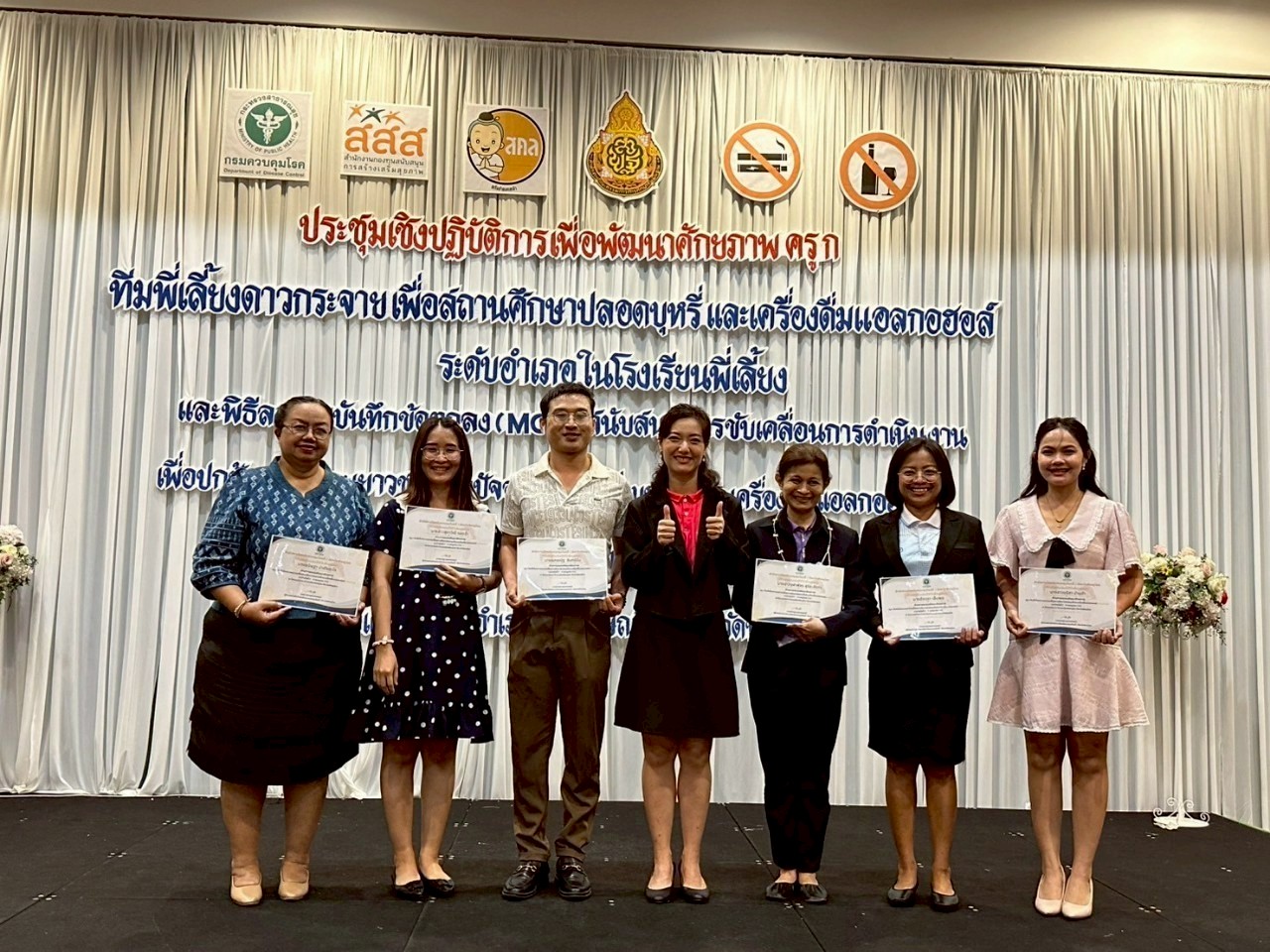 นางสาวจุฬาพัชร สุริยะลังกา นักวิชาการศึกษาชำนาญการ พร้อมด้วยครูและบุคลากรทางการศึกษาในสังกัด เข้าร่วมอบรมพัฒนาศักยภาพ ครู ก ทีมพี่เลี้ยงดาวกระจาย เพื่อสถานศึกษาปลอดบุหรี่และเครื่องดื่มแอลกอฮอล์ ระดับอำเภอ