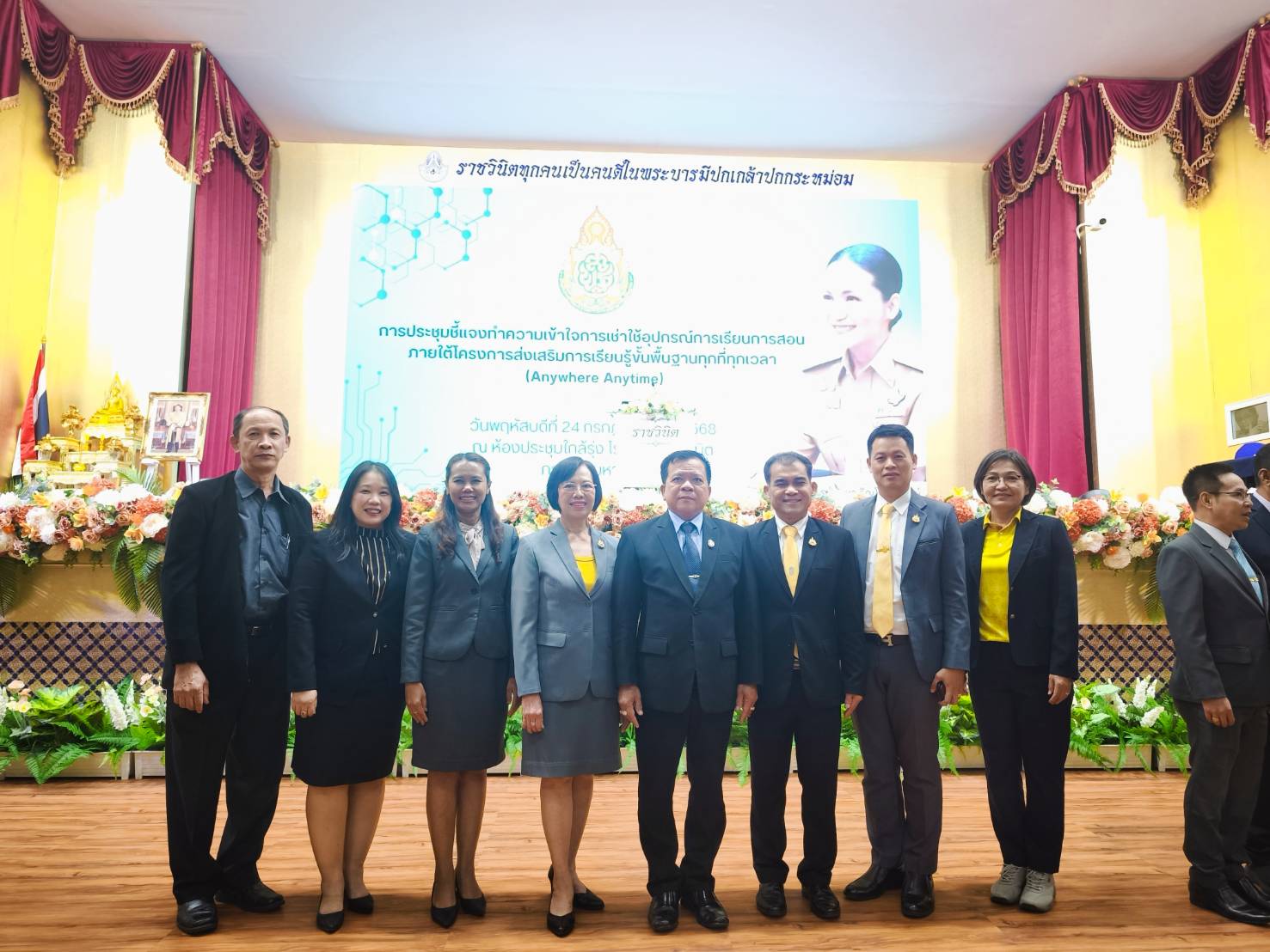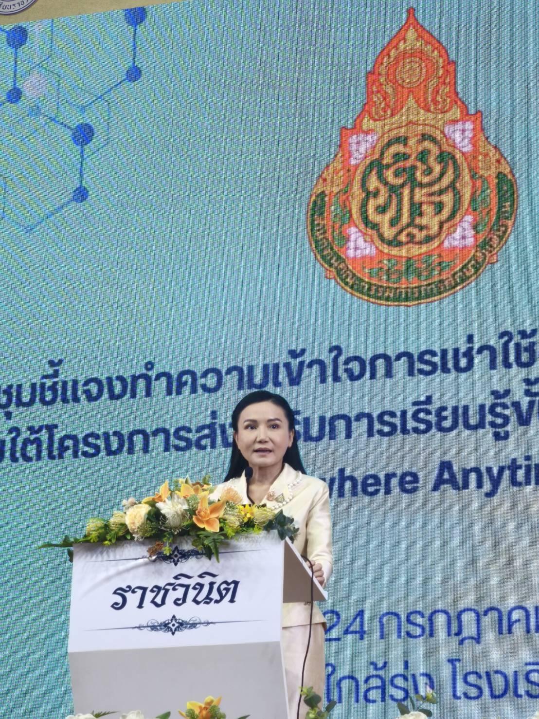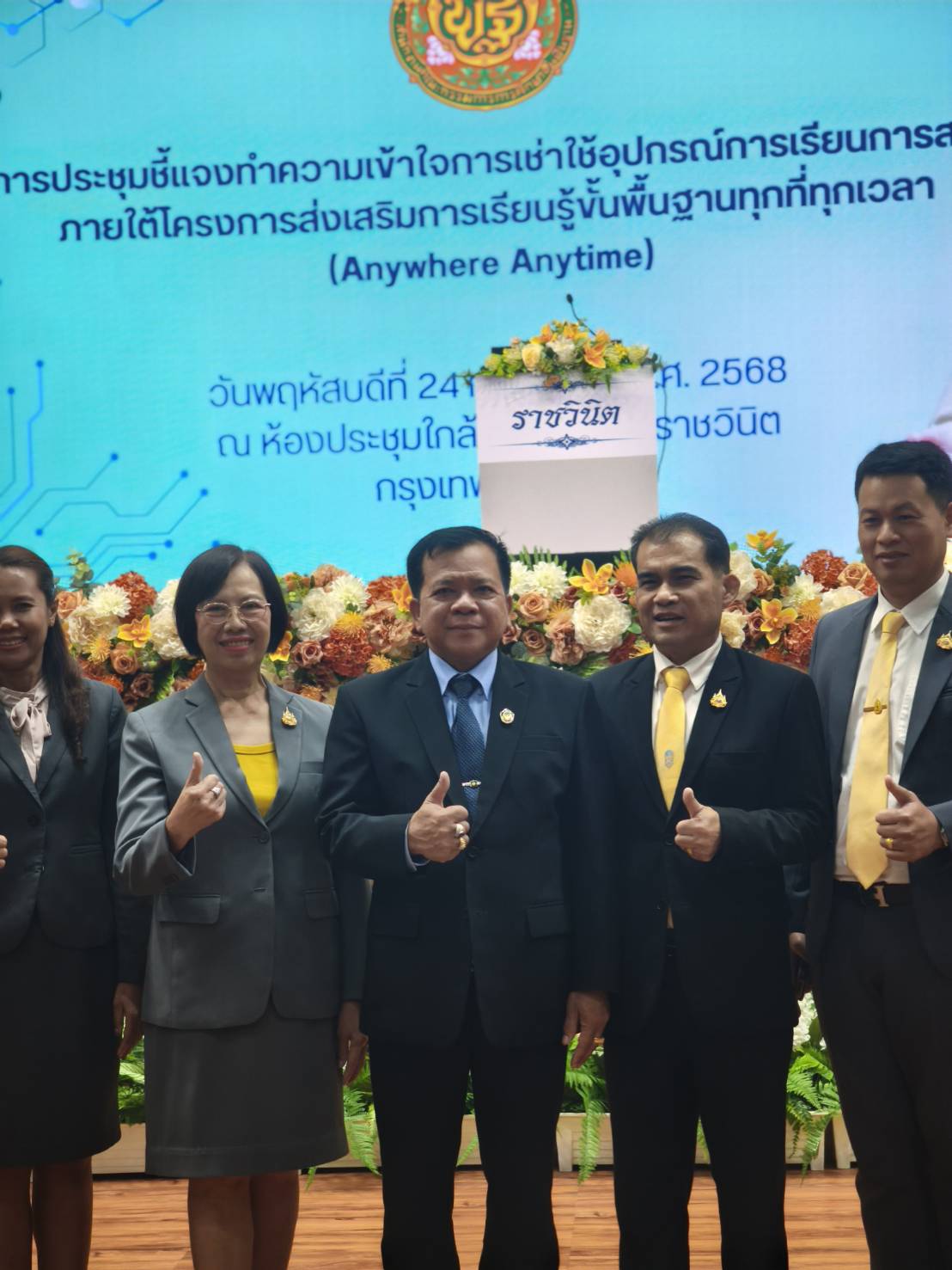 วันที่ 24 กรกฎาคม พ.ศ. 2568 นายสุดเขต สวยสม ผู้อำนวยการสำนักงานเขตพื้นที่การศึกษามัธยมศึกษาสุโขทัย พร้อมด้วยนางสาวสุวิมล คงเชย ผู้อำนวยการกลุ่มบริหารงานการเงินและสินทรัพย์ เข้าร่วมประชุมชี้แจงแนวทางการเช่าใช้อุปกรณ์การเรียนการสอน ภายใต้โครงการส่งเสริมการเรียนรู้ขั้นพื้นฐานทุกที่ทุกเวลา (Anywhere Anytime) ณ หอประชุมโรงเรียนราชวินิต กรุงเทพมหานคร โดยการประชุมครั้งนี้จัดขึ้นเพื่อสร้างความเข้าใจเกี่ยวกับแนวทางการดำเนินงานด้านการเช่าใช้อุปกรณ์การเรียนการสอนให้แก่ผู้บริหารสำนักงานเขตพื้นที่การศึกษาและผู้เกี่ยวข้องทั่วประเทศ โดยได้รับเกียรติจากศาสตราจารย์ ดร.นฤมล ภิญโญสินวัฒน์ รัฐมนตรีว่าการกระทรวงศึกษาธิการ เป็นประธานในพิธีเปิดและมอบนโยบายการขับเคลื่อนโครงการให้สอดคล้องกับนโยบายของกระทรวงศึกษาธิการ นอกจากนี้ ว่าที่ร้อยตรี ธนุ วงษ์จินดา เลขาธิการคณะกรรมการการศึกษาขั้นพื้นฐาน ได้บรรยายพิเศษและชี้แจงรายละเอียดแนวทางการดำเนินงานของโครงการเพื่อให้การขับเคลื่อนโครงการเป็นไปอย่างมีประสิทธิภาพเกิดประโยชน์สูงสุดต่อสถานศึกษาและผู้เรียนในระดับการศึกษาขั้นพื้นฐาน