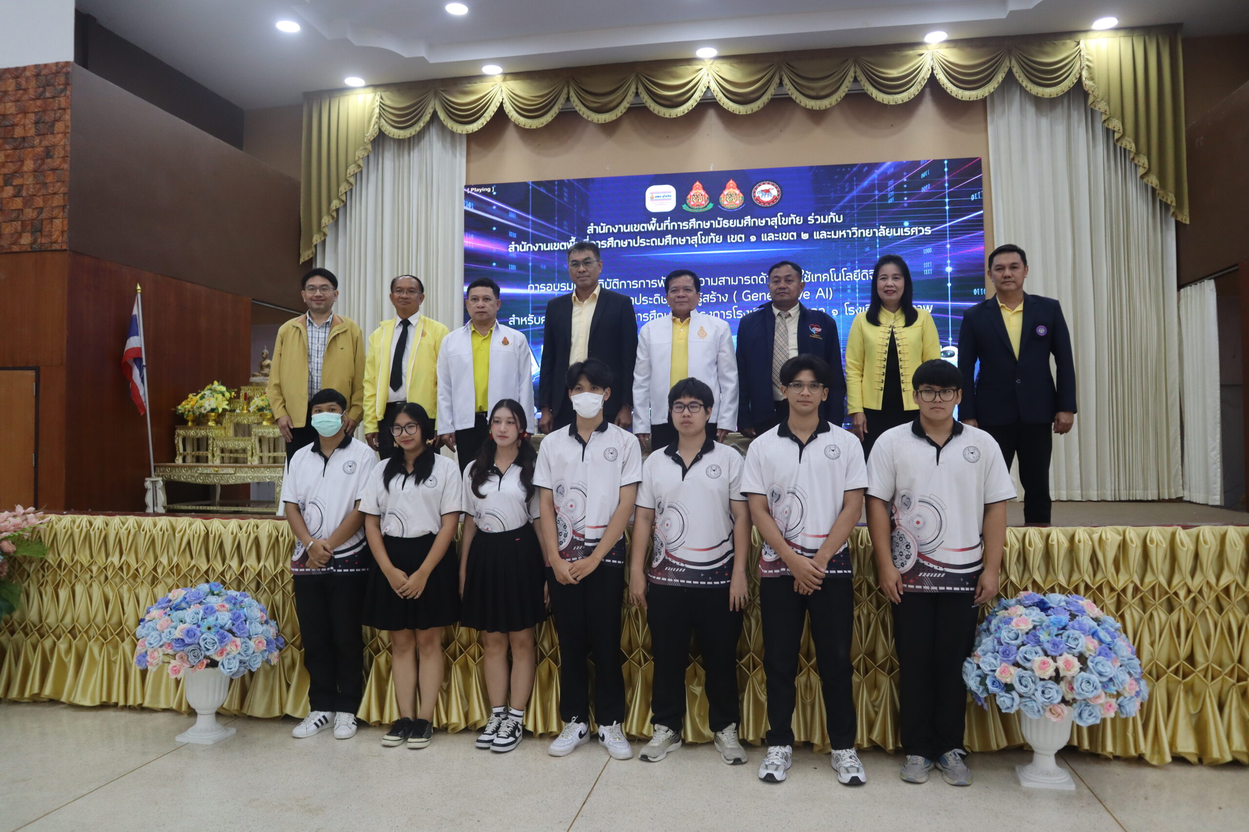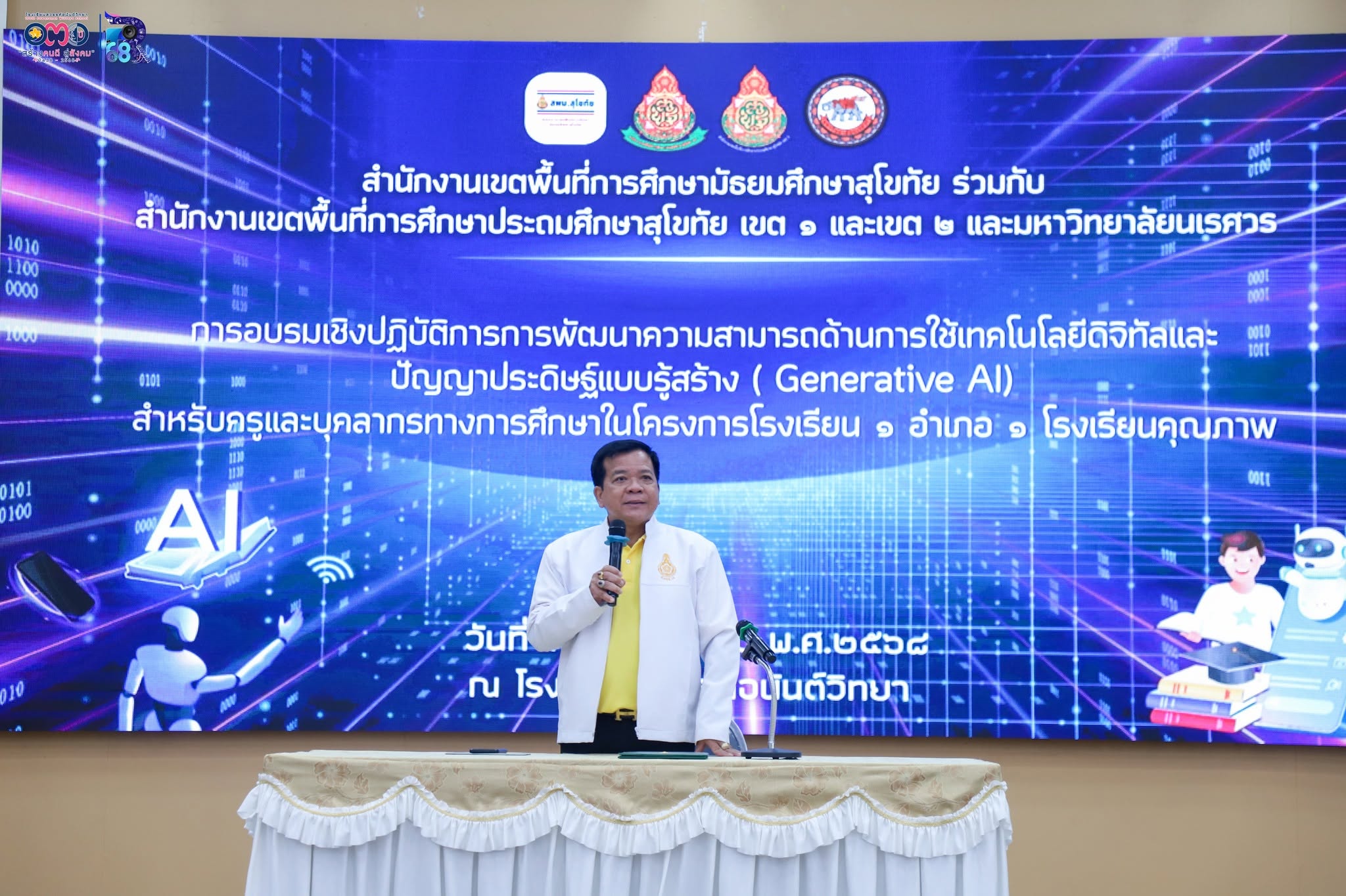 แบบบูรณาการ (Generative AI) สำหรับบุคคลกรทางการศึกษาตามโครงการโรงเรียนคุณภาพ 1 อำเภอ 1 โรงเรียนคุณภาพ จังหวัดสุโขทัย จำนวน 18 โรงเรียน ซึ่งจัดโดย สพม.สุโขทัย สพป.สุโขทัย เขต 1 สพป.สุโขทัย เขต 2 และมหาวิทยาลัยนเรศวร ณ ห้องประชุมโรงเรียนสวรรค์อนันต์วิทยา (1 สิงหาคม 2568) เครดิตภาพ : โรงเรียนสวรรค์อนันต์วิทยา