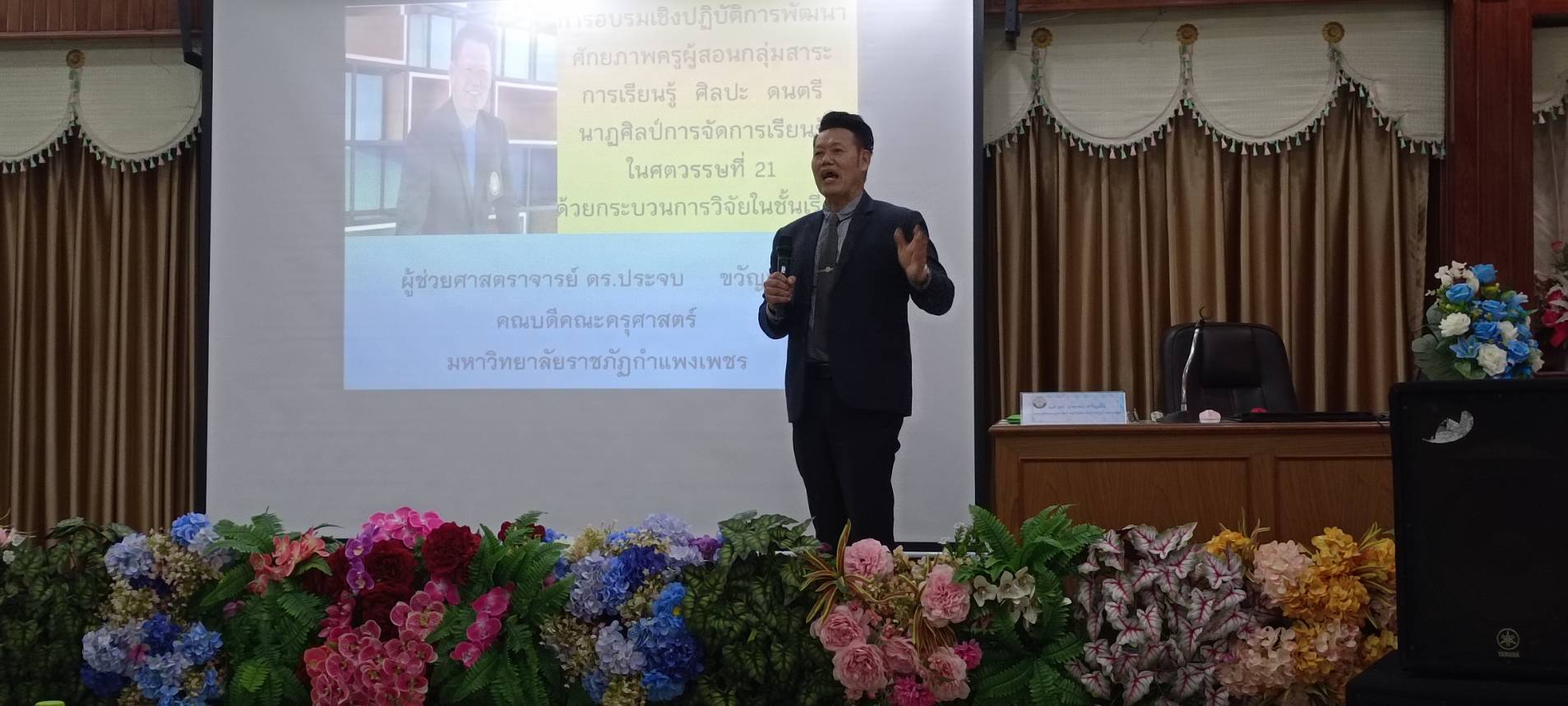 การอบรม เรื่อง พัฒนาศักยภาพครูผู้สอนกลุ่มสาระการเรียนรู้ ศิลปะ ดนตรี นาฎศิลป์ ในการจัดการเรียนรู้ในศตวรรษที่ 21 ด้วยใช้กระบวนการวิจัยในชั้นเรียน ณ ห้องประชุมเฉลิมพระเกียรติ โรงเรียนศรีสำโรงชนูปถัมภ์ การอบรมในครั้งนี้มีวัตถุประสงค์ เพื่อให้ครูผู้สอนกลุ่มสาระการเรียนรู้ ศิลปะ ดนตรี นาฎศิลป์ ให้มีความรู้ความเข้าใจในการออกแบบและเขียนแผนการจัดการเรียนรู้ให้ครูและบุคลากรทางการศึกษา สามารถแก้ไขปัญหานักเรียน โดยใช้กระบวนการวิจัยในชั้นเรียน