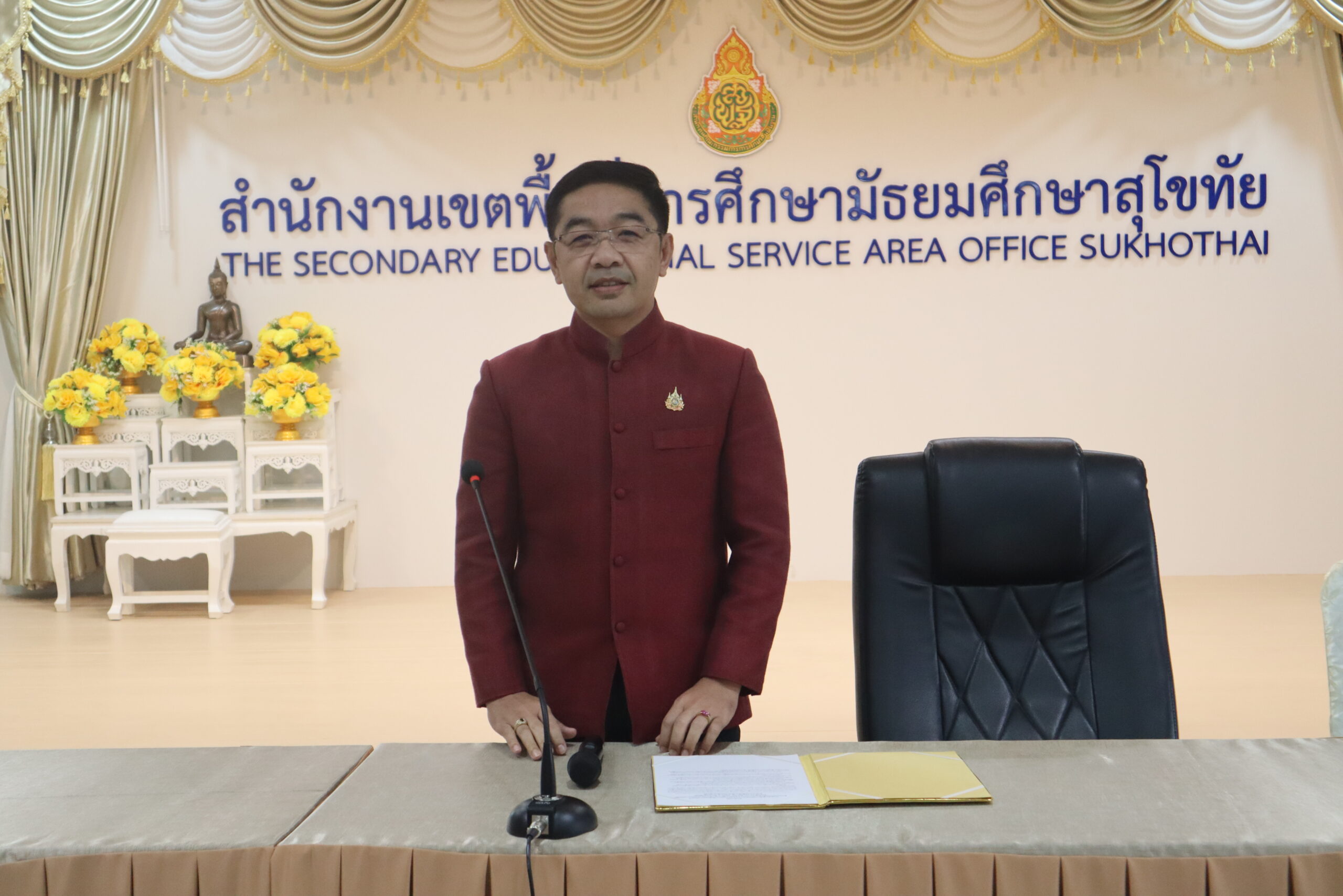 มอบหมายให้นายศราวุธ คำแก้ว รองผู้อำนวยการสำนักงานเขตพื้นที่การศึกษามัธยมศึกษาสุโขทัย เป็นประธานในพิธีเปิด