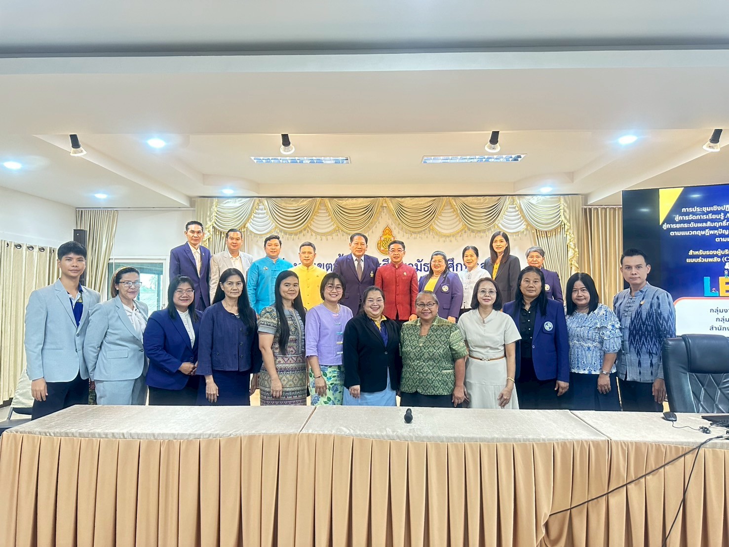 การประชุมเชิงปฏิบัติการบริหารหลักสูตรและงานวิชาการสู่การจัดการเรียนรู้ Active Learning เพื่อพัฒนาความฉลาดรู้สู่การยกระดับผลสัมฤทธิ์ทางการเรียน และพัฒนาผู้เรียนตามความเป็นเลิศตามแนวทฤษฎีพหุปัญญา (Theory of Multiple Intelligences) ตามมาตรฐานการศึกษาขั้นพื้นฐาน สำหรับรองผู้บริหารฝ่ายบริหารงานวิชาการ และครูผู้ช่วยแบบร่วมพลัง การประชุมเชิงปฏิบัติการครั้งนี้ มุ่งเน้นให้ผู้เข้าร่วม ได้แก่ รองผู้อำนวยการฝ่ายบริหารงานวิชาการ และครูผู้ช่วยในสังกัดสพม.สุโขทัย ได้เสริมสร้างความเข้าใจและทักษะเชิงปฏิบัติด้านการบริหารหลักสูตร การจัดการเรียนรู้เชิงรุก และการประยุกต์ใช้ทฤษฎีพหุปัญญาในการจัดการเรียนการสอน ทั้งนี้เพื่อให้การจัดการศึกษาเกิดผลลัพธ์ที่มีคุณภาพและสอดคล้องกับมาตรฐานการศึกษาในศตวรรษที่ 21 โดยมีการจัดกิจกรรม ณ ห้องประชุมสุโขทัย (วันที่ 22 สิงหาคม 2568)