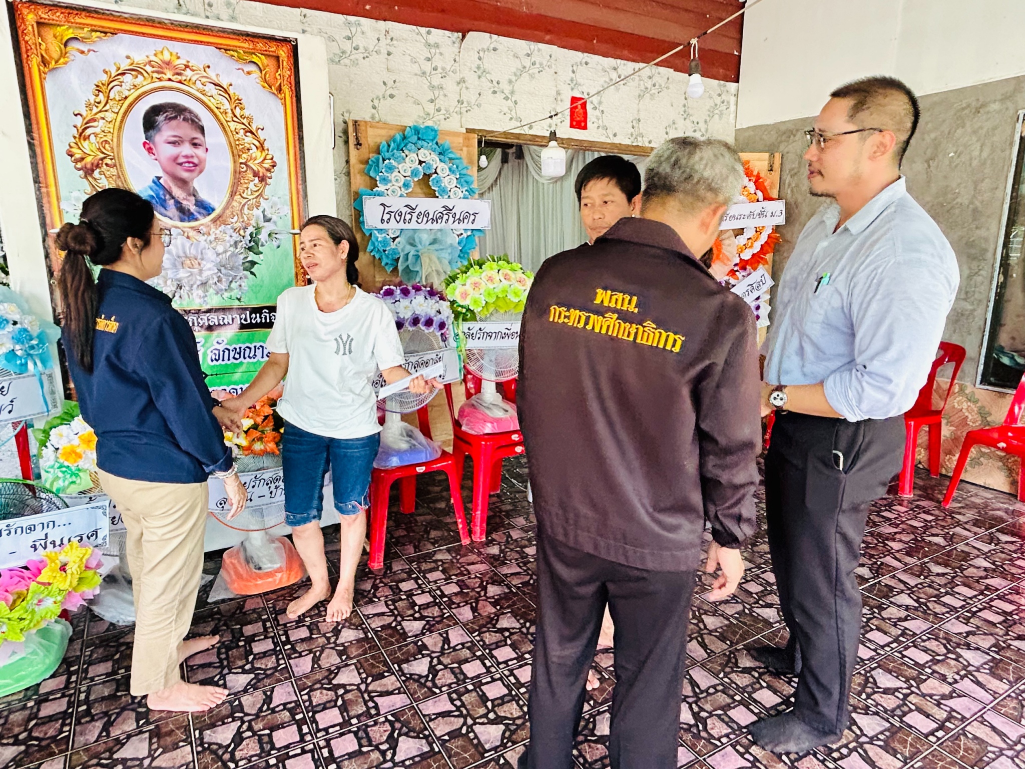 มอบหมายให้กลุ่มส่งเสริมการจัดการศึกษา (ศูนย์บริหารความสุขและความปลอดภัย สพม.สุโขทัย) ลงพื้นที่ แสดงความเสียใจและมอบกำลังใจแก่ครอบครัวของเด็กชายภูวเนศวร์ ลักษณาวงค์ นักเรียนชั้นมัธยมศึกษาปีที่ 3/5 โรงเรียนศรีนคร ที่เสียชีวิตจากอุบัติเหตุทางน้ำ พร้อมทั้งมอบเงินกองทุนช่วยเหลือเด็กนักเรียนแก่ครอบครัว ณ ตำบลหนองบัว อำเภอศรีนคร
