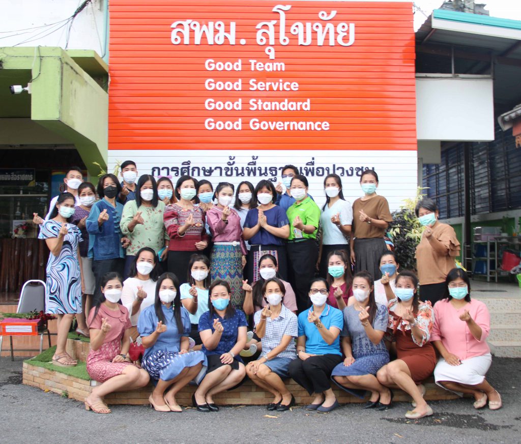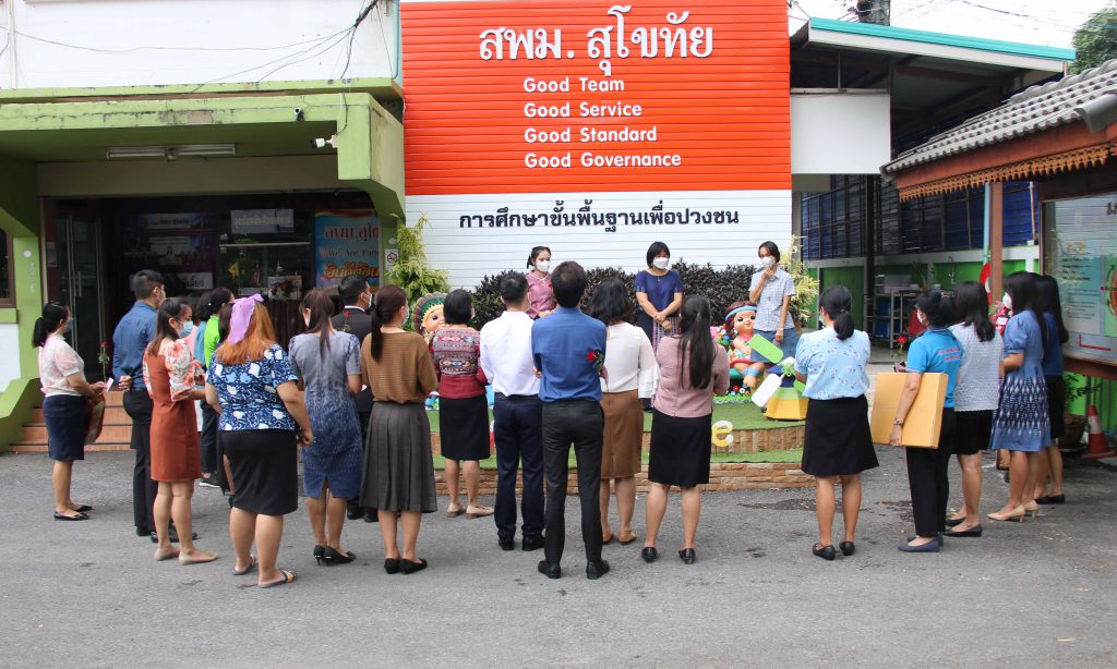 ดร.ศิริวรรณ ขวัญมุข รองผู้อำนวยการสำนักงานเขตพื้นที่การศึกษามัธยมศึกษาสุโขทัย รักษาราชการแทน ผู้อำนวยการสำนักงานเขตพื้นที่การศึกษามัธยมศึกษาสุโขทัย พร้อมด้วยบุคลากร สพม.สุโขทัย ร่วมแสดงความยินดีกับ นางสาวกมลศรี ยี่สุ่น นักวิเคราะห์นโยบายและแผนชำนาญการ เนื่องในโอกาสย้ายไปดำรงตำแหน่งที่สํานักงานเขตพื้นที่การศึกษาประถมศึกษาสุโขทัย เขต 2 ณ หน้าอาคารสำนักงานเขตพื้นที่การศึกษามัธยมศึกษาสุโขทัย