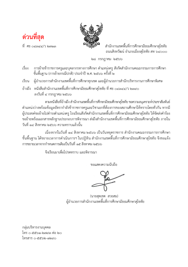 การย้ายข้าราชการครูและบุคลากรทางการศึกษา ตำแหน่งครู สังกัดสำนักงานคณะกรรมการการศึกษาขั้นพื้นฐาน (การย้ายกรณีปกติ) ประจำปี พ.ศ. 2566 ครั้งที่ 2 30 กรกฎาคม 256630 กรกฎาคม 2023 ธีรโชติ พระเจริญ ข่าวประชาสัมพันธ์, รับสมัครบุคคล เยี่ยมชม : 1,490 ธีรโชติ พระเจริญ